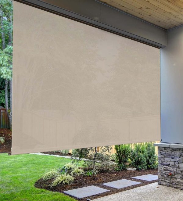 PlowHearth Deluxe Roll-Up Outdoor Solar Shade with Cordless Crank